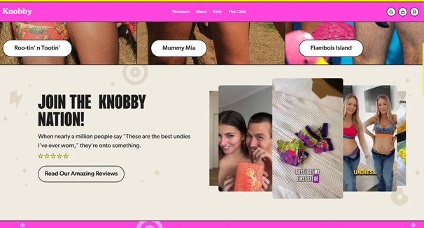 Knobby website. Loyalty framed as belonging: “Welcome to the … Club” with a clear join/login CTA.