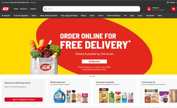 IGA website -locality-based identity backed by explanation: “your local grocer, now online”.