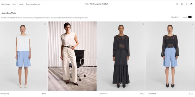 Viktoria and Woods. National identity cue: an “Australian Made” collection that is easy to browse.