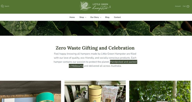 Little Green Hampster website – operational locality proof: “handpicked and packed in Melbourne”.
